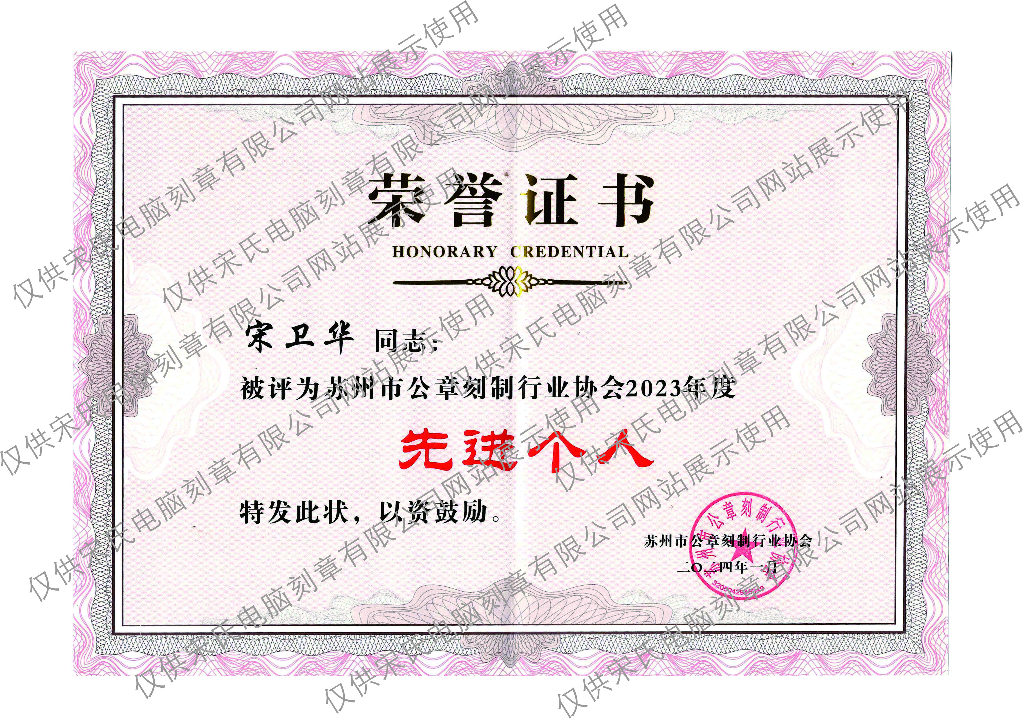 宋衛(wèi)華被評(píng)為蘇州市公章刻制行業(yè)協(xié)會(huì)2023年度先進(jìn)個(gè)人